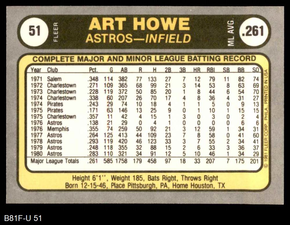 1981 Fleer #51 Art Howe 8 - NM/MT