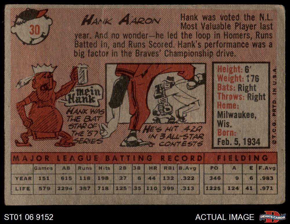 1958 Topps #30 WN Hank Aaron 1 - POOR