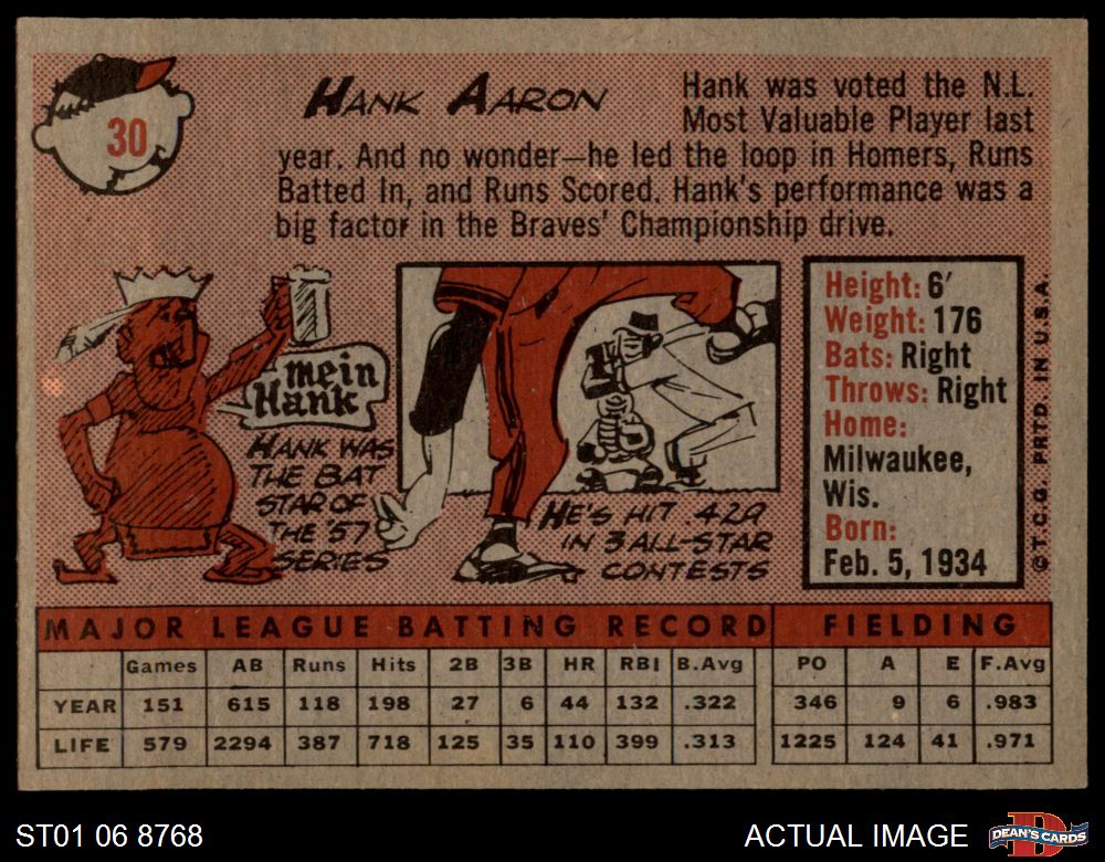 1958 Topps #30 WN Hank Aaron