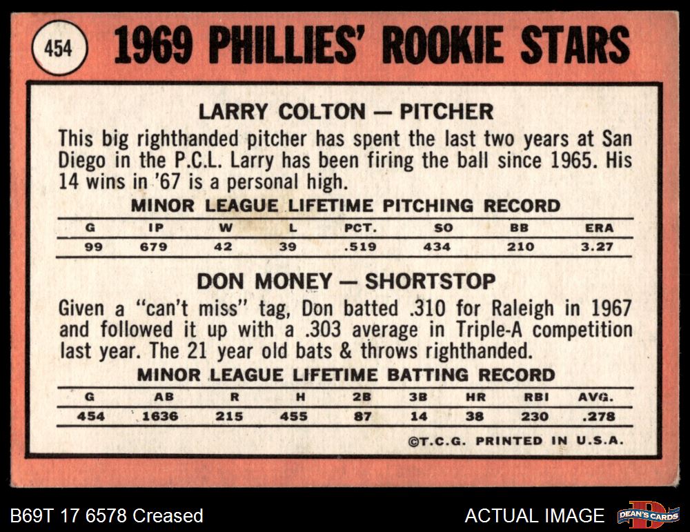 1969 Topps #454 YN - Don Money / Larry Colton Phillies Rookies 2 - GOOD