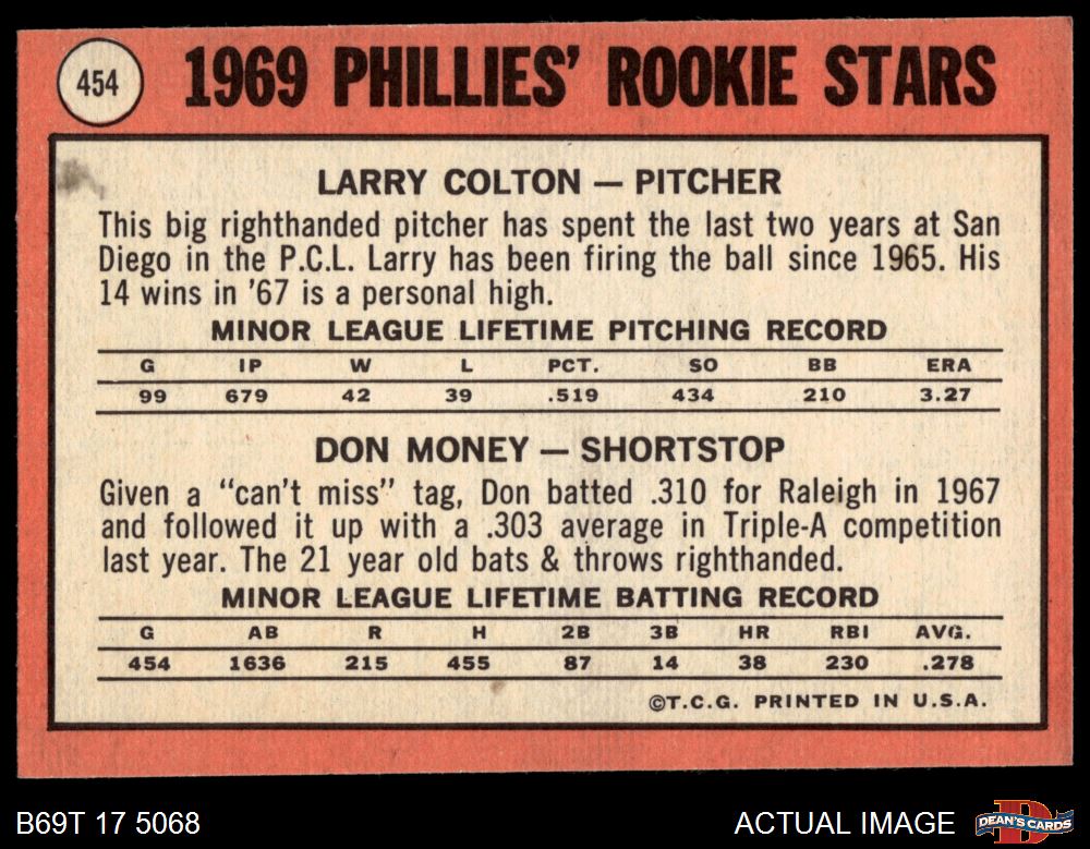 1969 Topps #454 YN - Don Money / Larry Colton Phillies Rookies 5 - EX