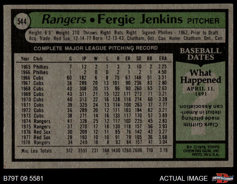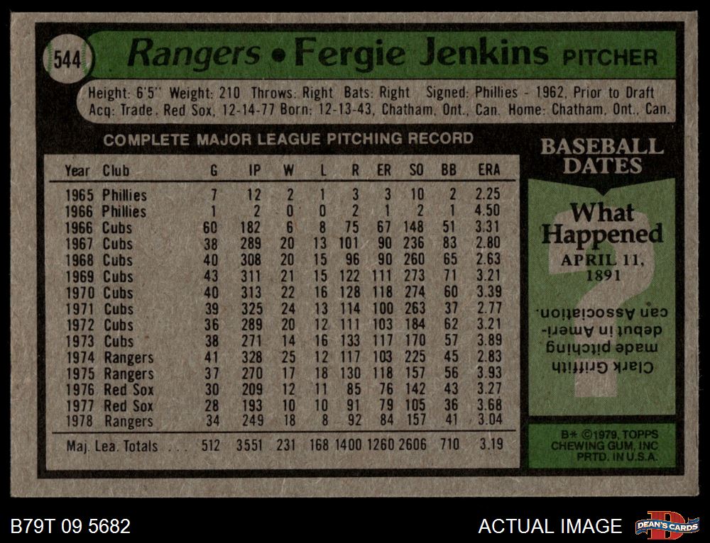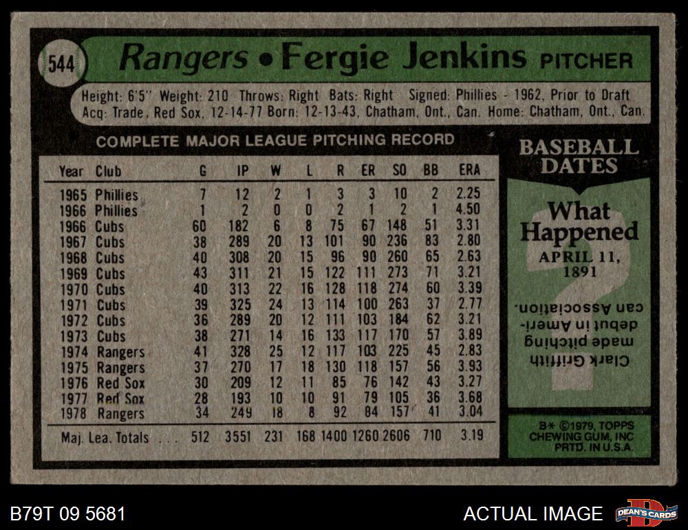 1979 Topps #544 Fergie Jenkins