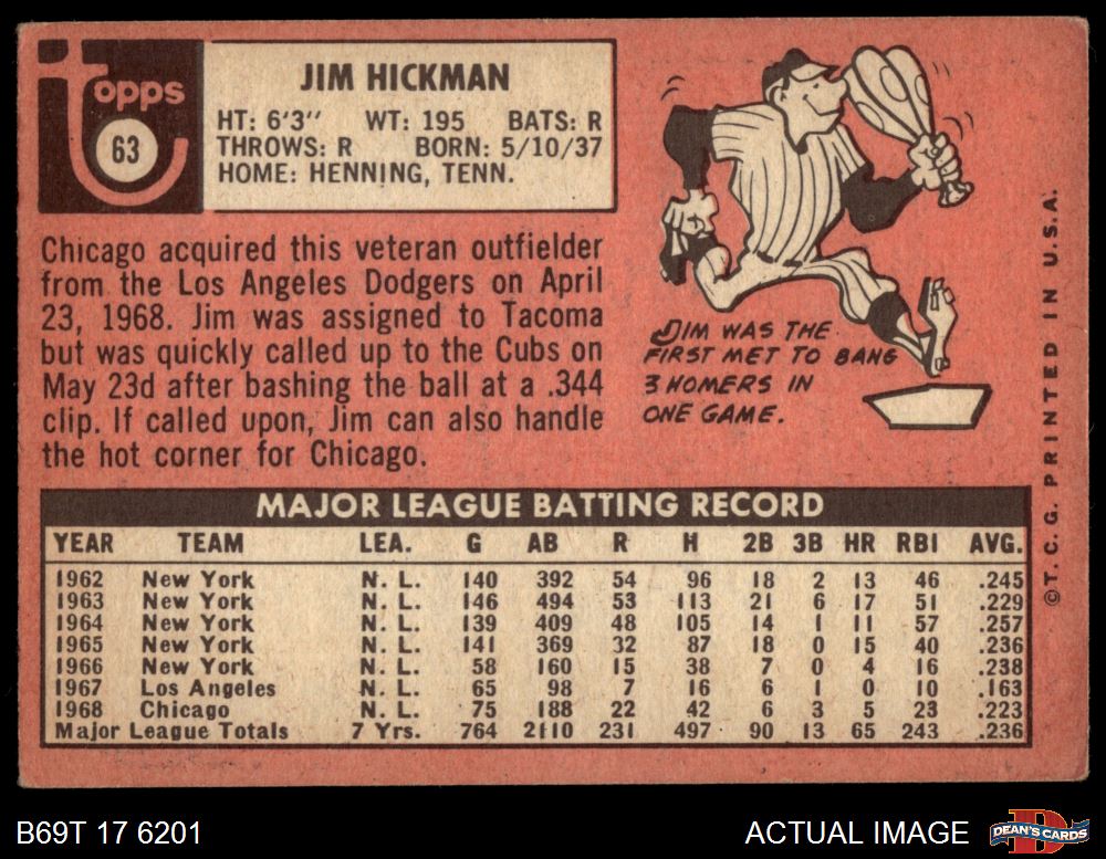1969 Topps #63 Jim Hickman 2 - GOOD