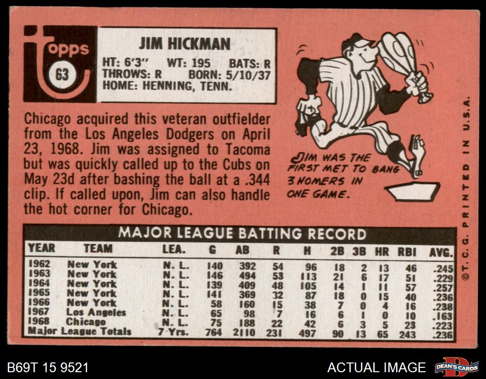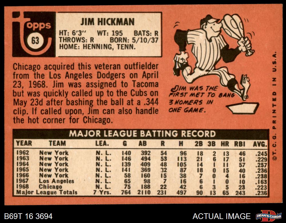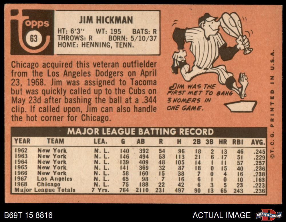 1969 Topps #63 Jim Hickman 5 - EX