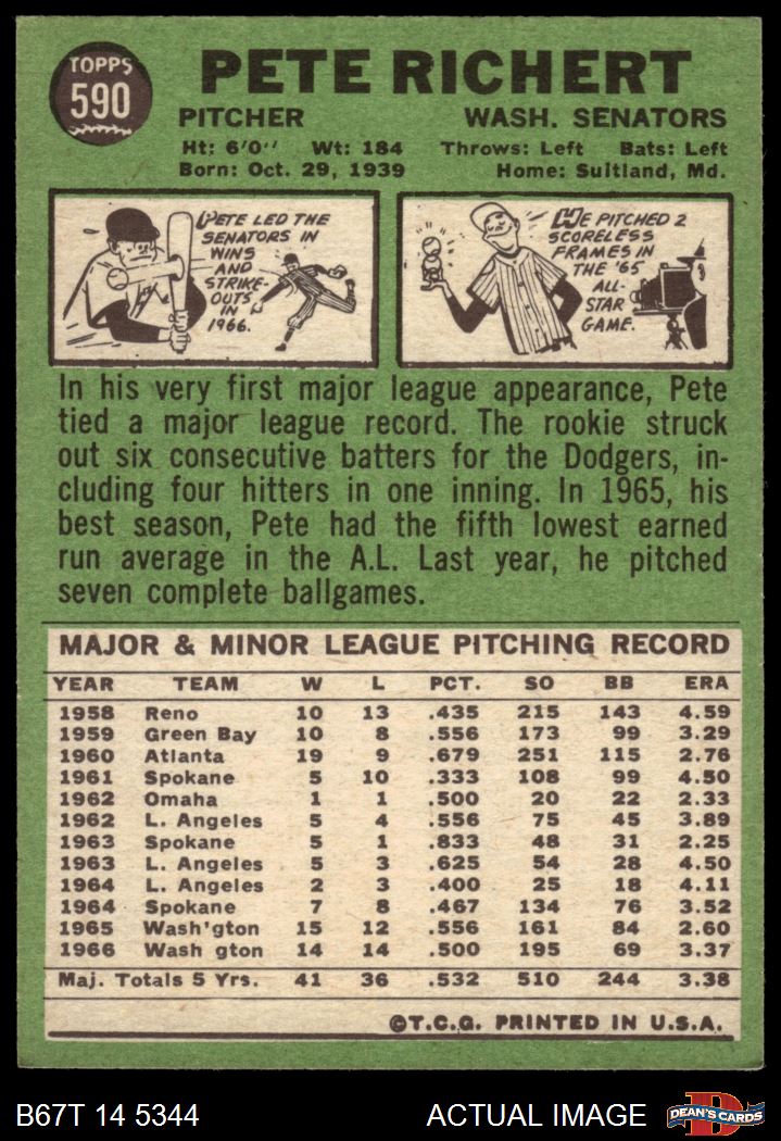 1967 Topps #590 Pete Richert 4 - VG/EX