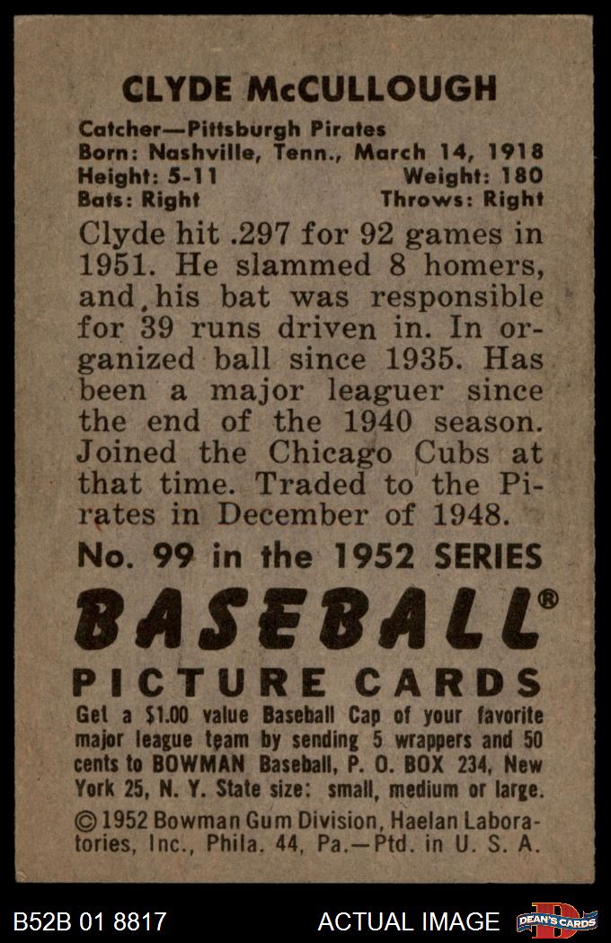 1952 Bowman #99 Clyde McCullough 5 - EX