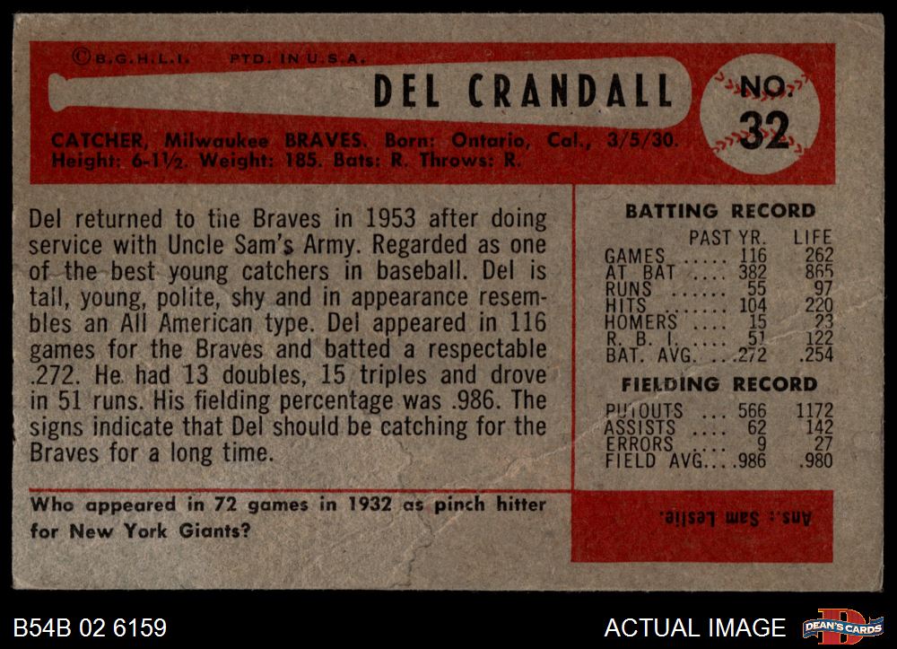 1954 Bowman #32 Del Crandall