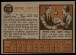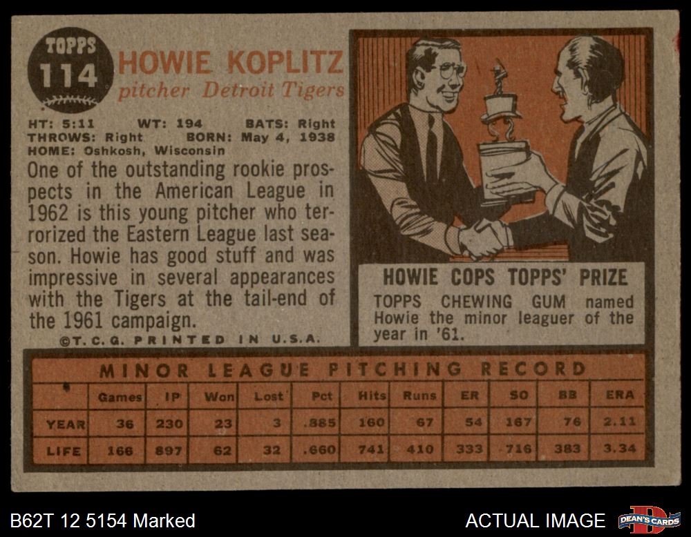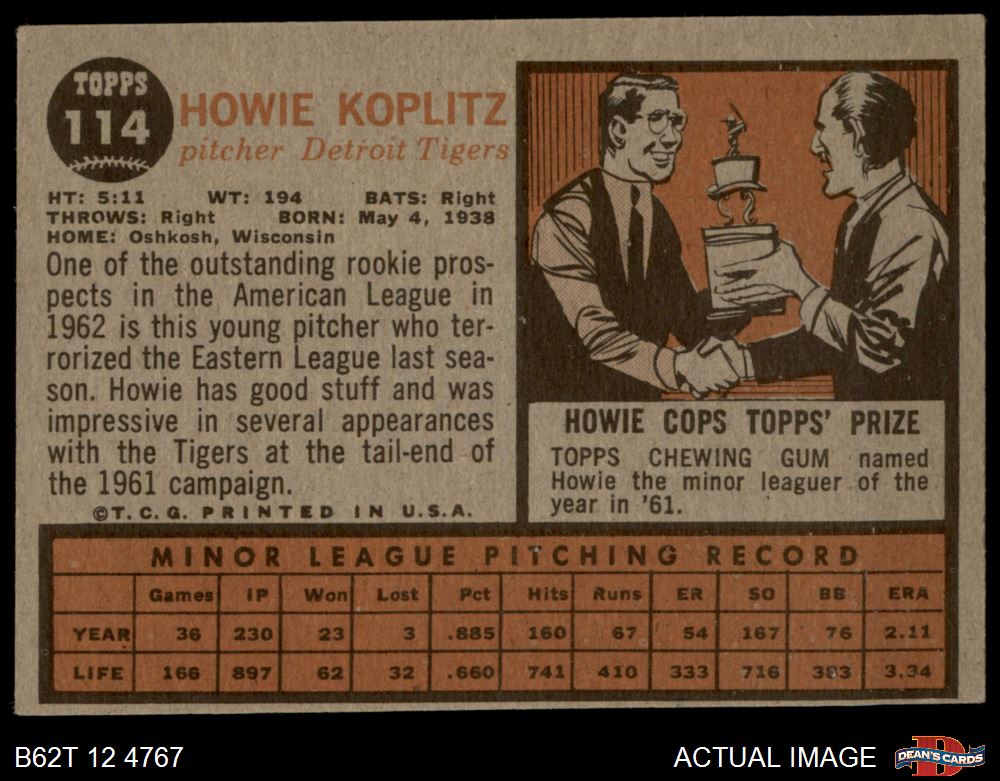 1962 Topps #114 NRM Howie Koplitz 1.5 - FAIR