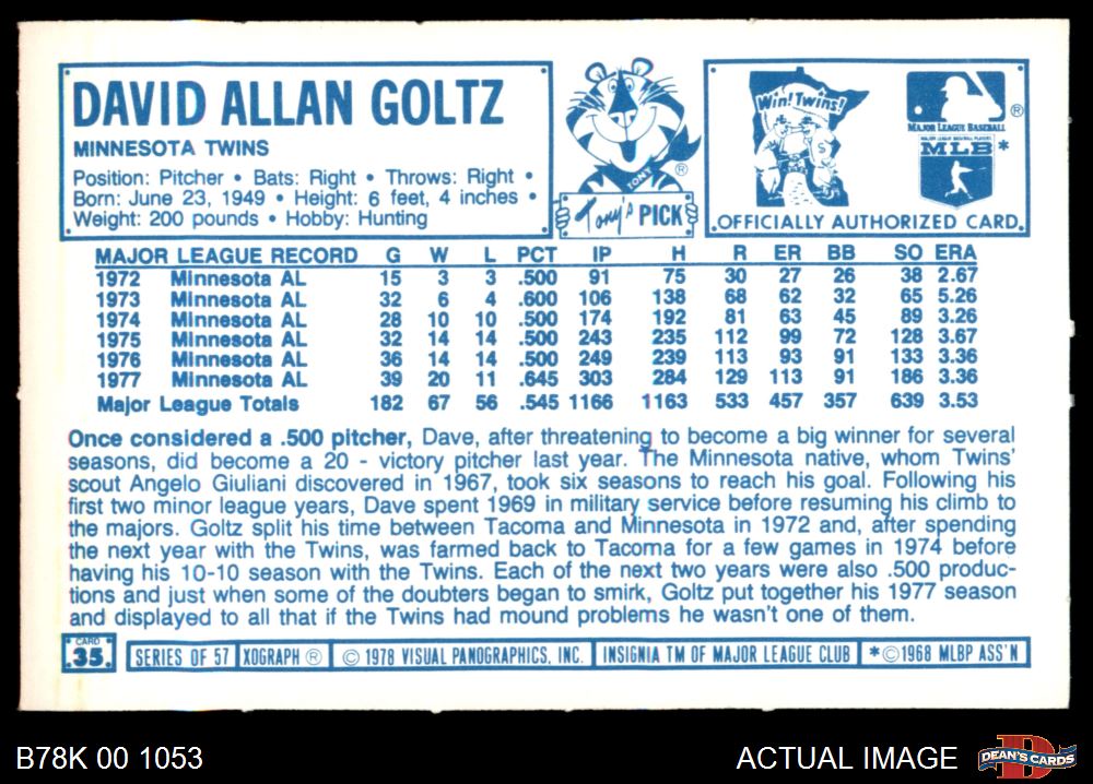 1978 Kellogg's #35 Dave Goltz 4 - VG/EX