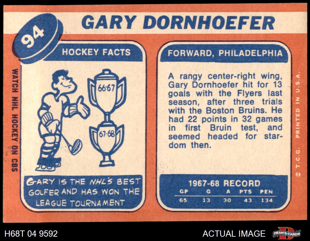 1968 Topps #94 Gary Dornhoefer 7.5 - NM+