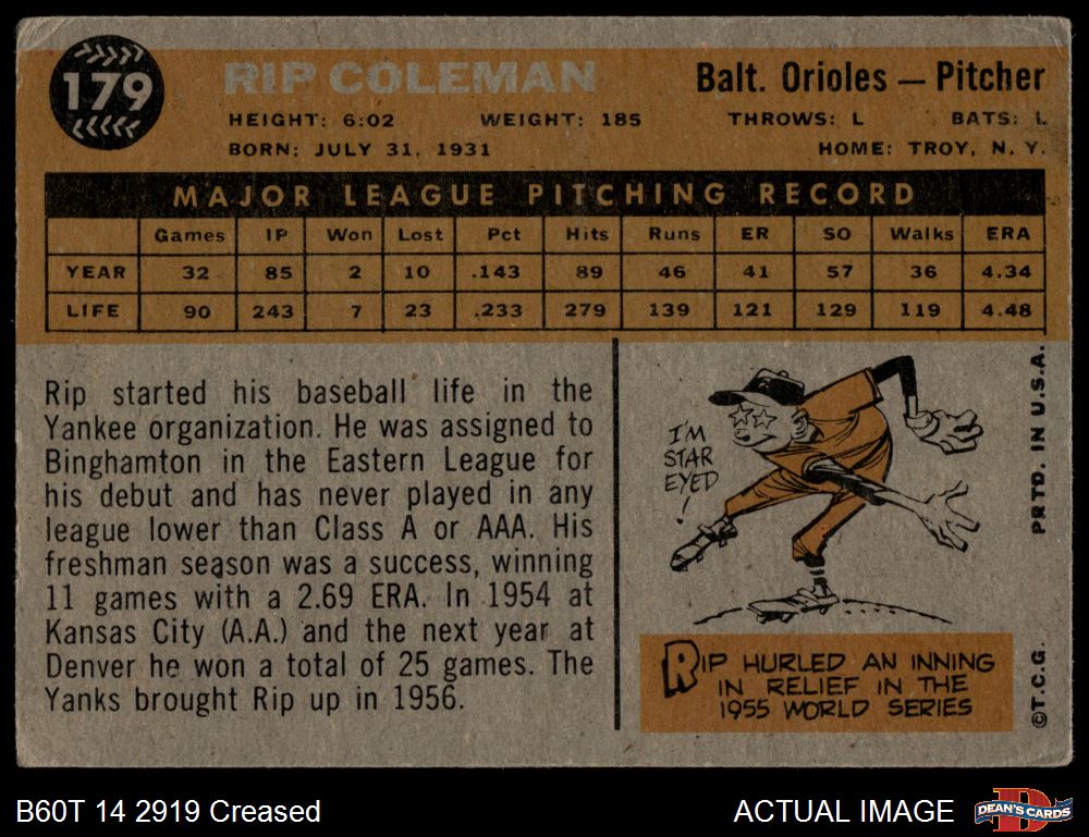1960 Topps #179 Rip Coleman 2 - GOOD