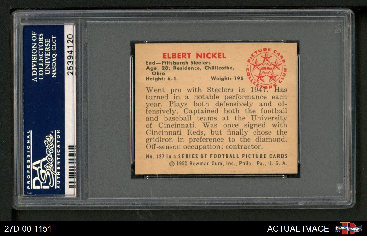 1950 Bowman #127 Elbert Nickel PSA 6 - EX/MT