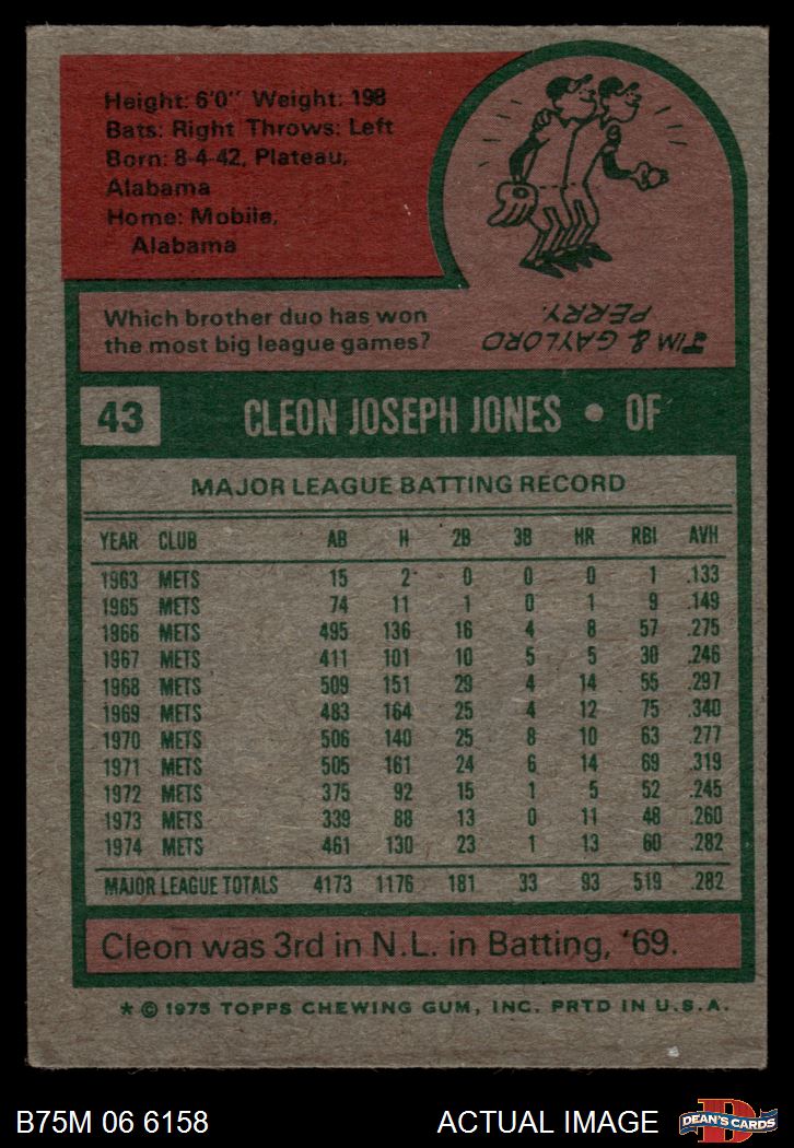 1975 Topps Mini #43 Cleon Jones 2 - GOOD