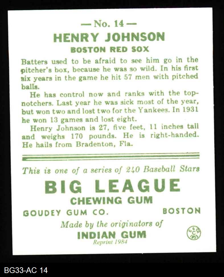 1933 Goudey Reprint (1,589 available)1933 Goudey Reprint Red Sox (59 available)