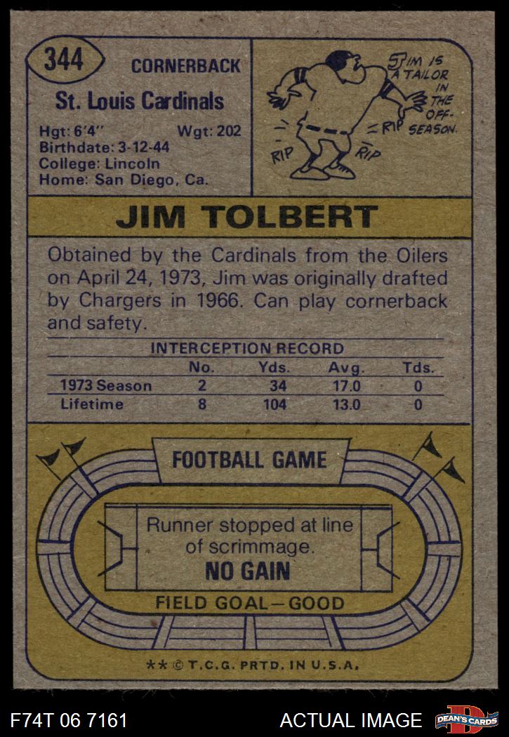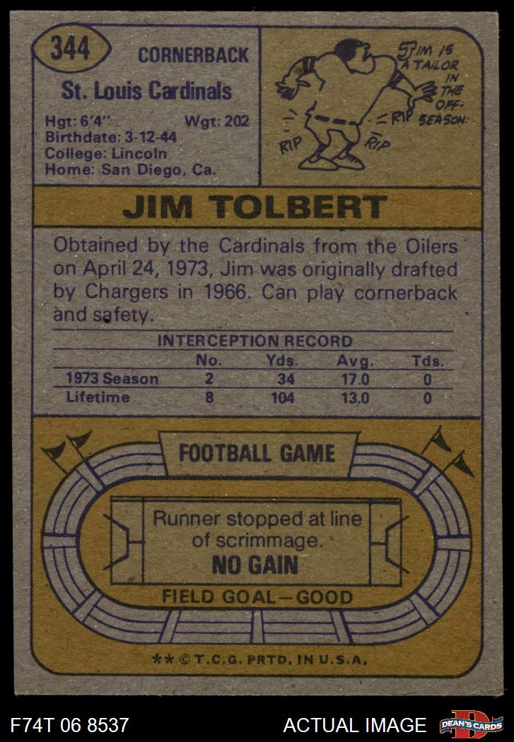 1974 Topps #344 Jim Tolbert