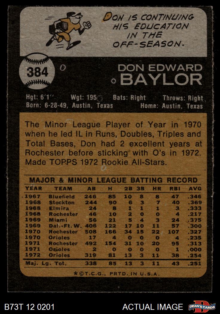 1973 Topps #384 Don Baylor 2 - GOOD