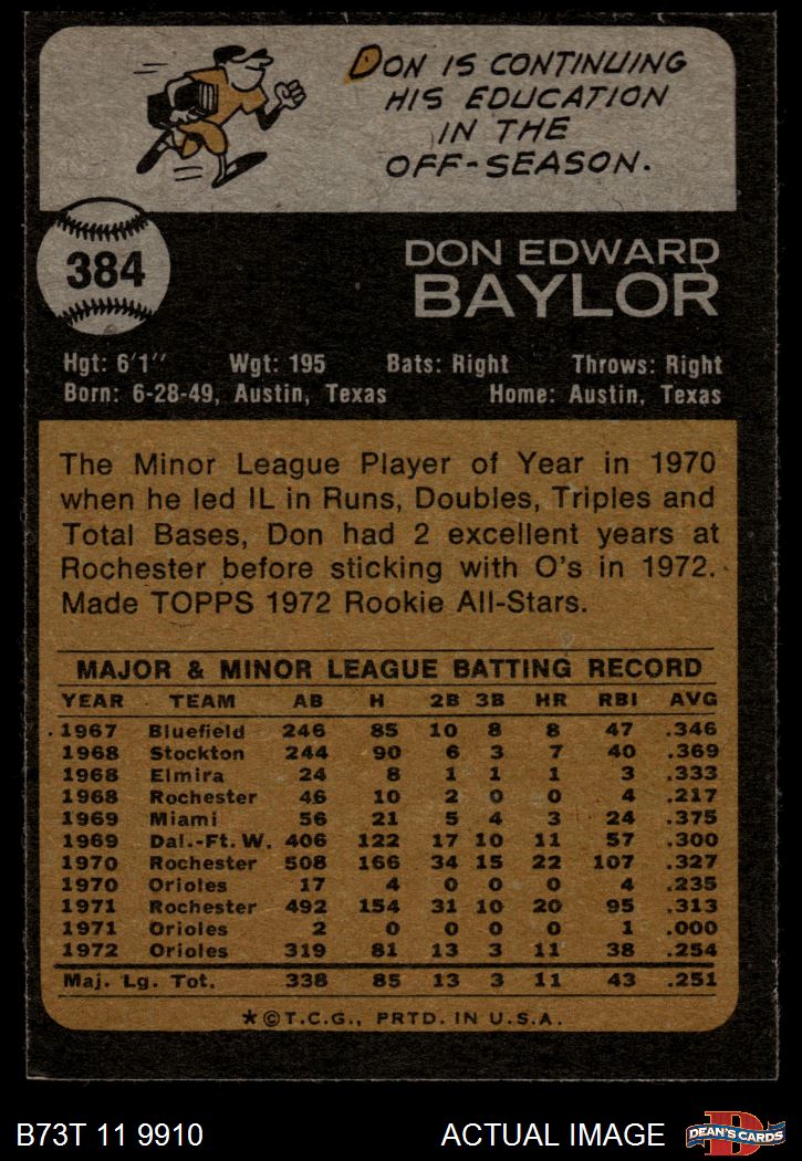 1973 Topps #384 Don Baylor 3 - VG