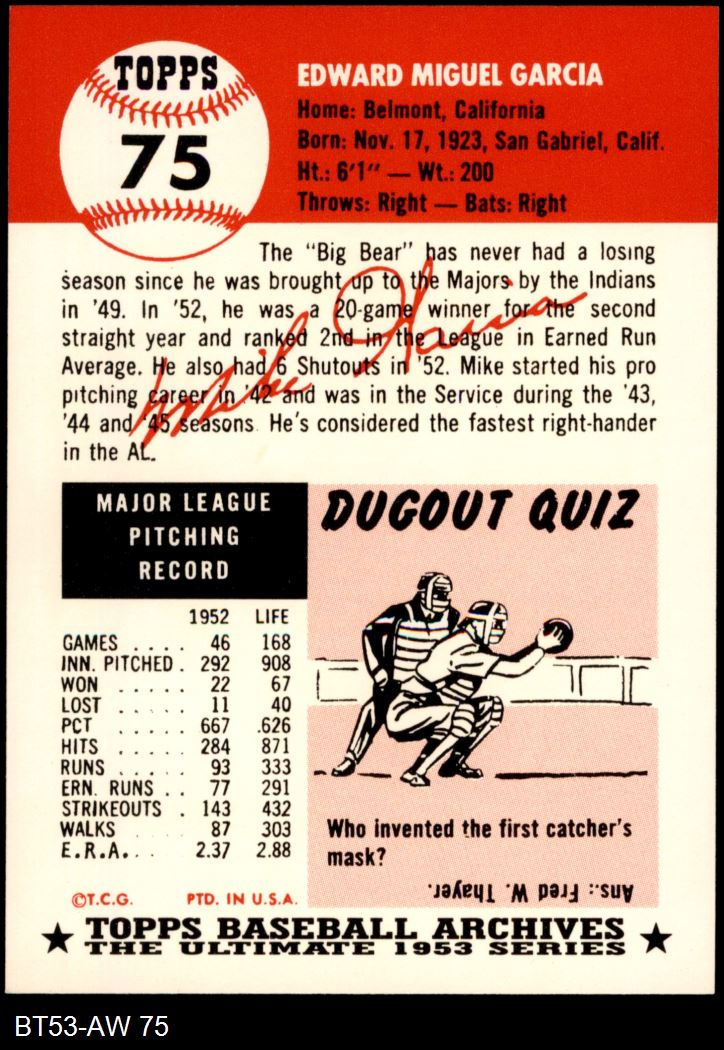 1953 Topps Archives #75 Mike Garcia 8 - NM/MT
