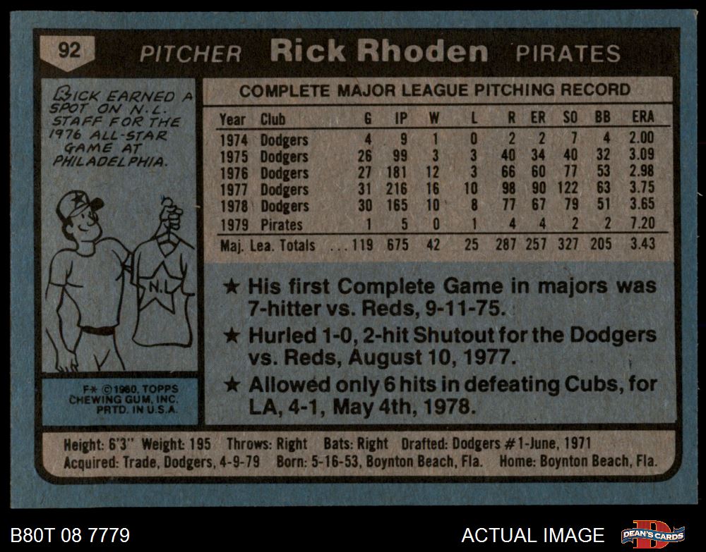 1980 Topps #92 Rick Rhoden 6.5 - EX/MT+