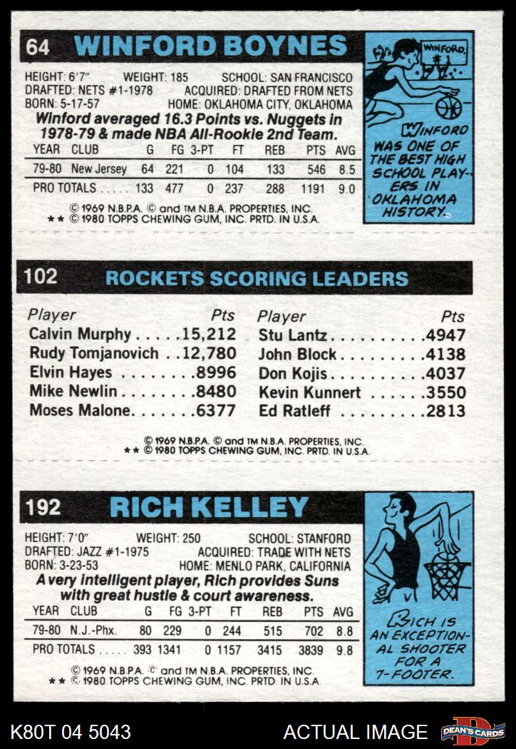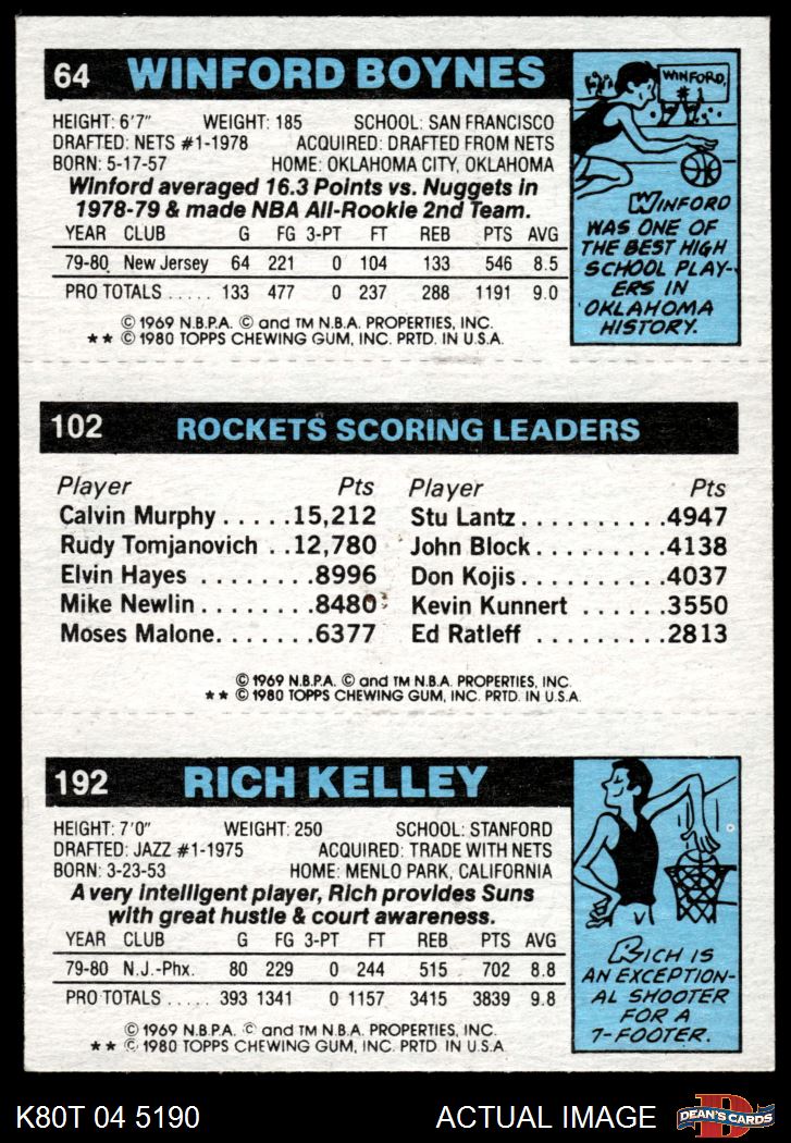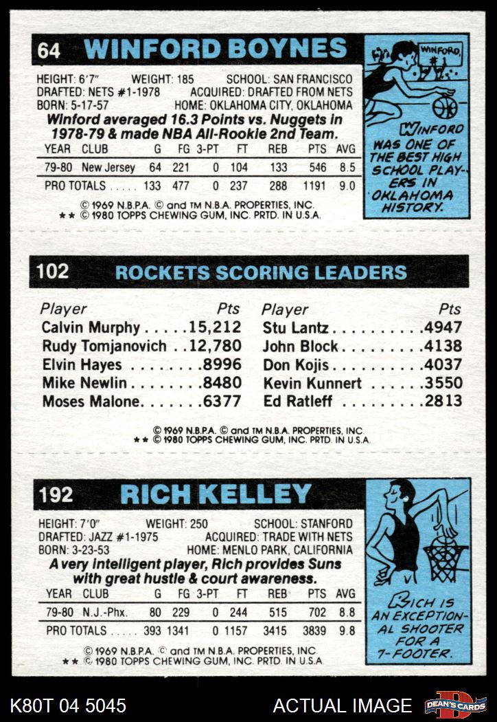 1980 Topps - Rich Kelley / Moses Malone / Winford Boynes 192 / 102 / 64 7 - NM