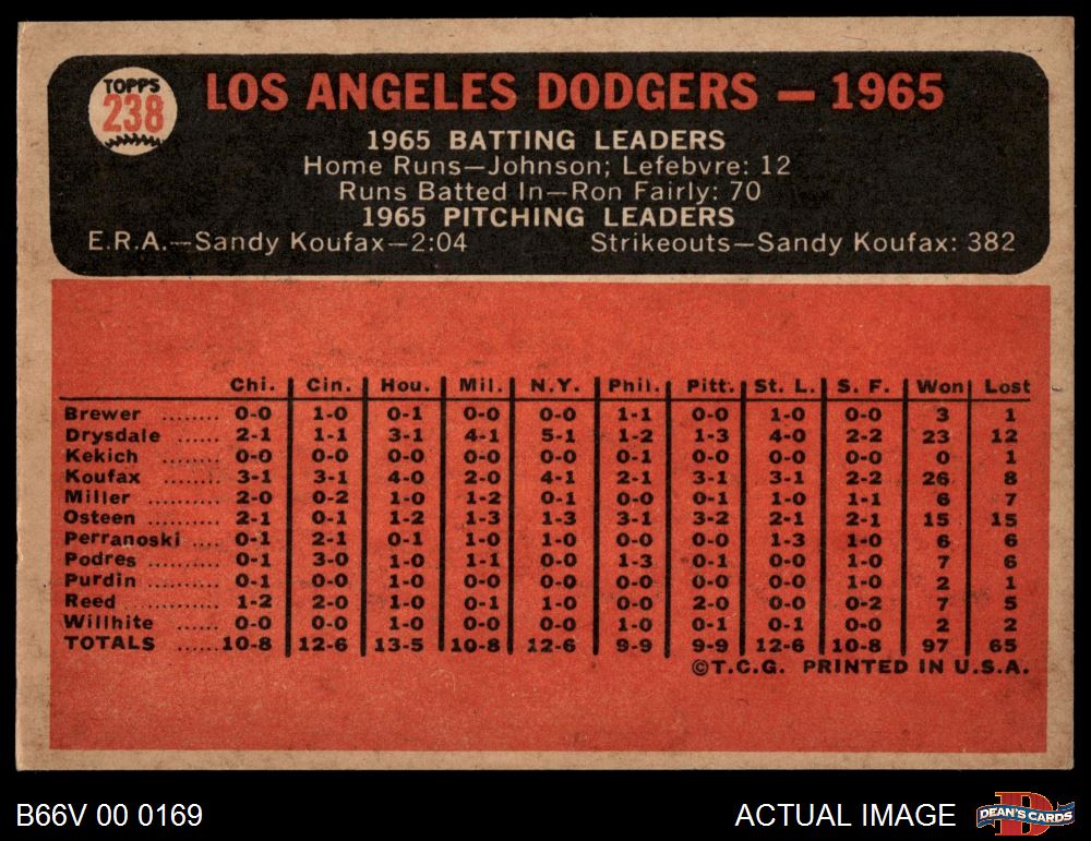 1966 Topps Venezuelan #238 Dodgers Team 5 - EX
