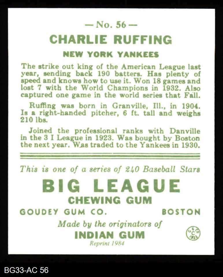 1933 Goudey Reprint (1,589 available)1933 Goudey Reprint Yankees (92 available)