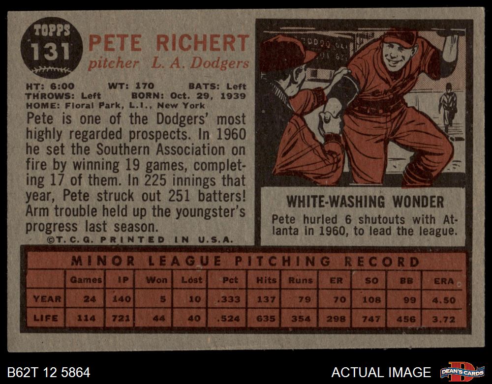 1962 Topps #131 GRN Pete Richert 5 - EX