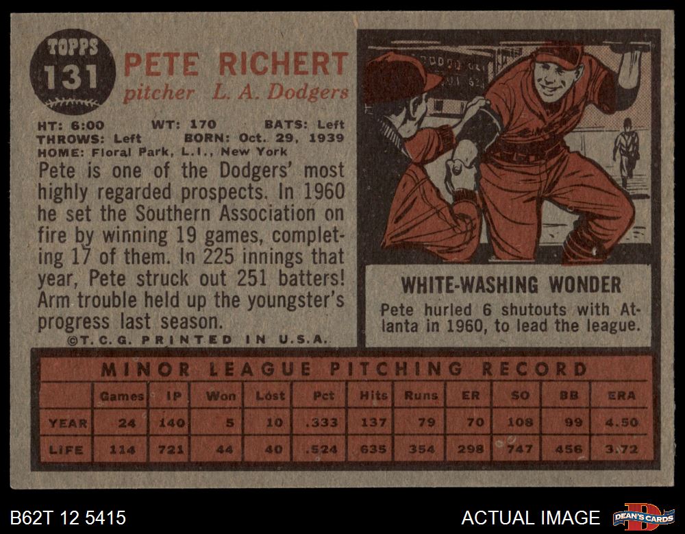 1962 Topps #131 GRN Pete Richert 6 - EX/MT