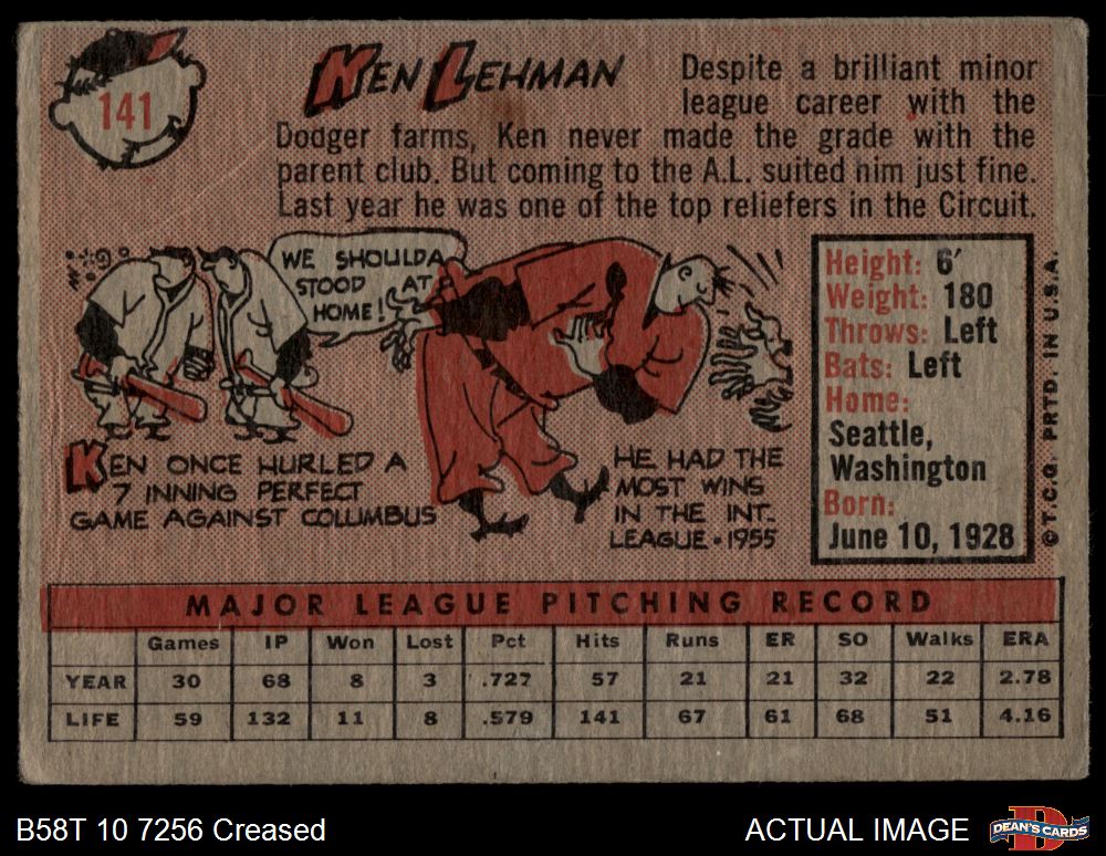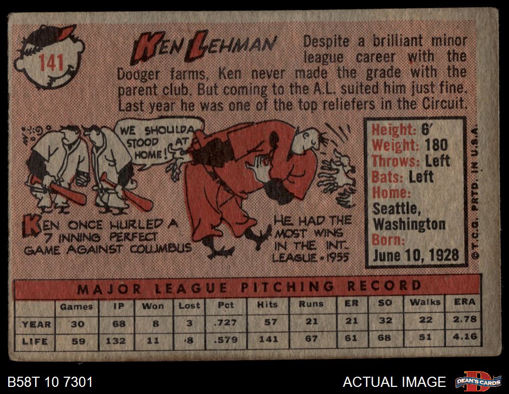 1958 Topps #141 Ken Lehman 1.5 - FAIR