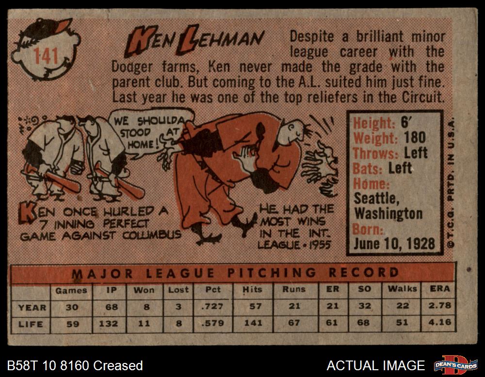 1958 Topps #141 Ken Lehman