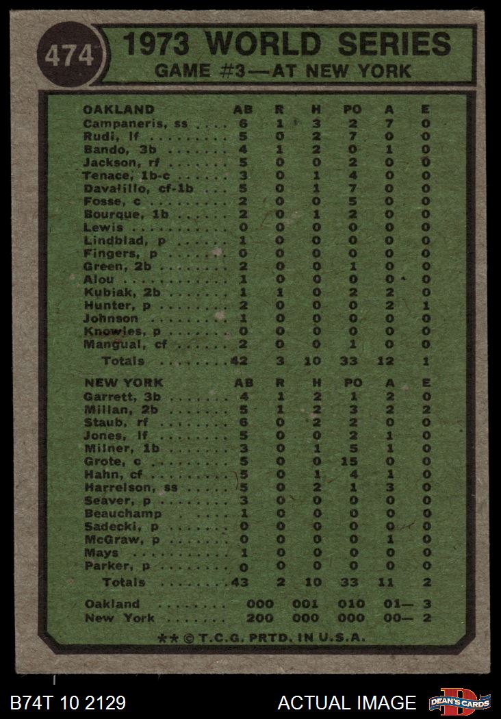 1974 Topps #474 - Felix Millan / Bert Campaneris 1973 World Series - Game #3 3 - VG