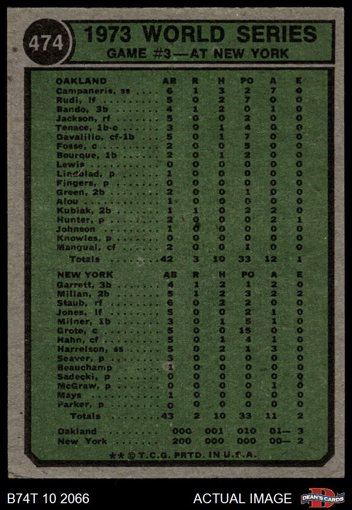 1974 Topps #474 - Felix Millan / Bert Campaneris 1973 World Series - Game #3 4 - VG/EX