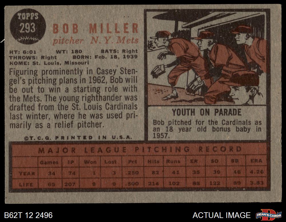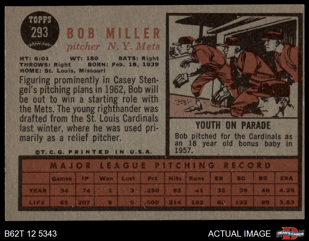 1962 Topps #293 Bob Miller