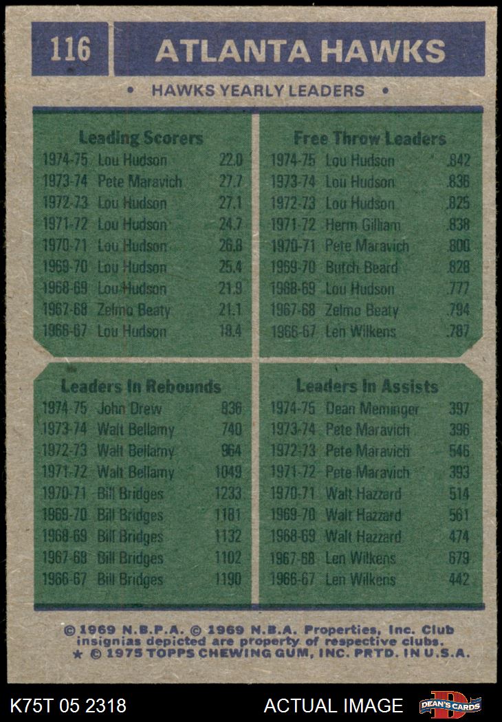 1975 Topps #116 - John Drew / Dean Meminger / Lou Hudson Hawks Leaders 5 - EX