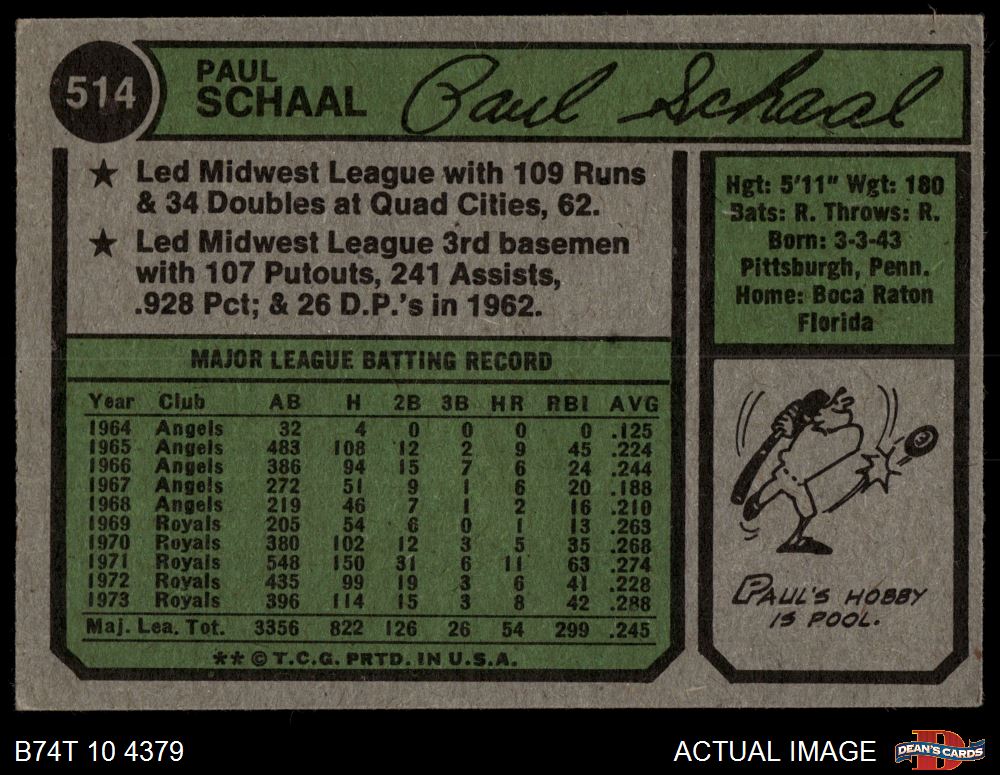 1974 Topps #514 Paul Schaal 3 - VG