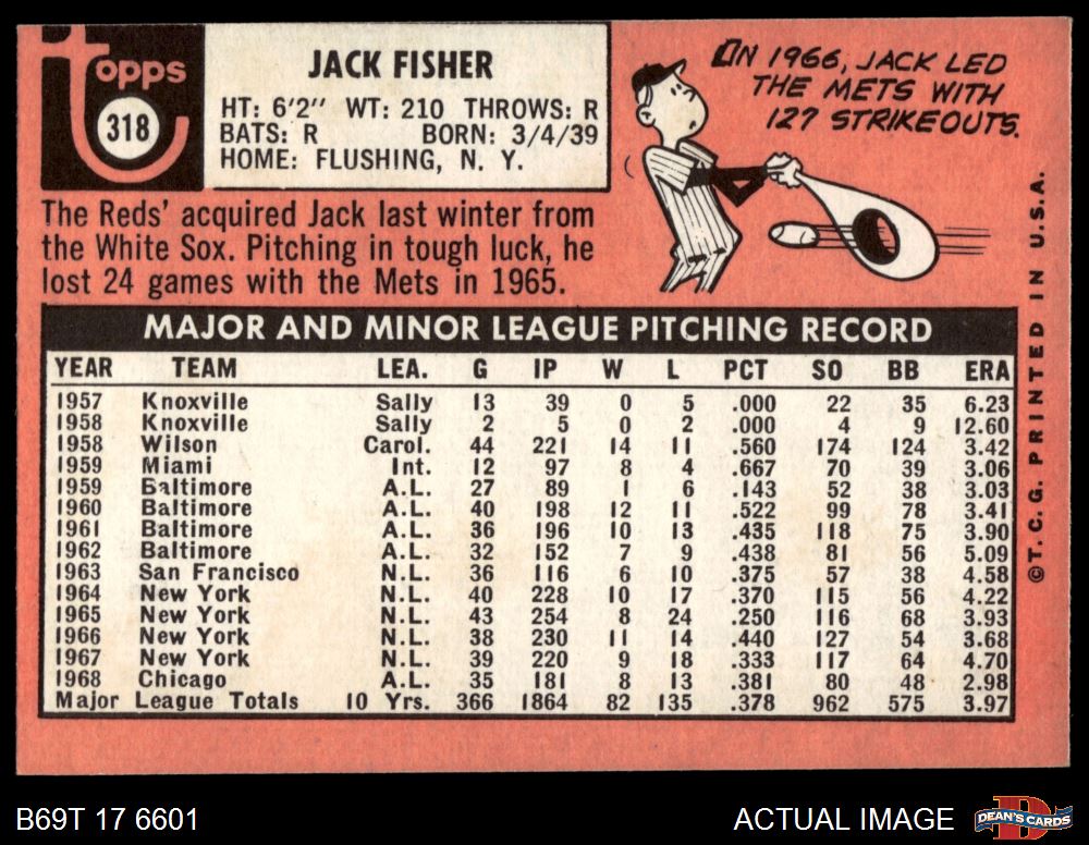 1969 Topps #318 Jack Fisher