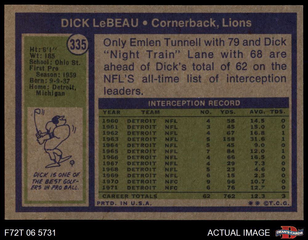 1972 Topps #335 Dick LeBeau 7.5 - NM+