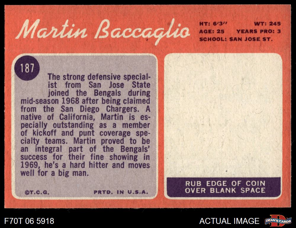 1970 Topps #187 Martin Baccaglio 6 - EX/MT