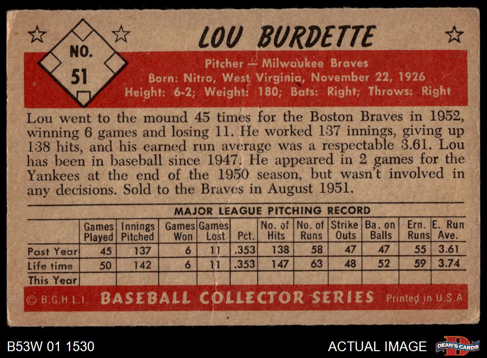 1953 Bowman B&W #51 Lew Burdette 2 - GOOD