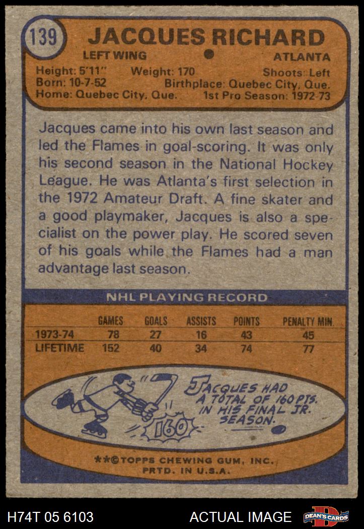 1974 Topps #139 Jacques Richard 4.5 - VG/EX+