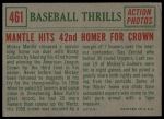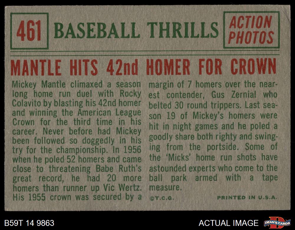 1959 Topps #461 - Mickey Mantle Hits 42nd Homer for Crown 4 - VG/EX