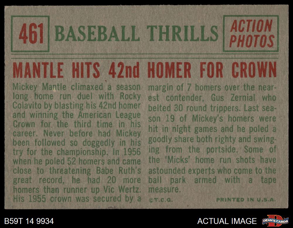 1959 Topps #461 - Mickey Mantle Hits 42nd Homer for Crown 5.5 - EX+