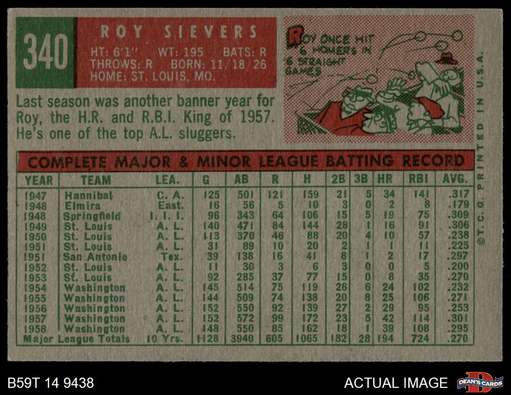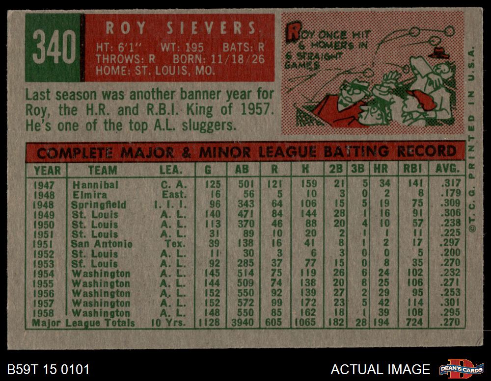 1959 Topps #340 Roy Sievers