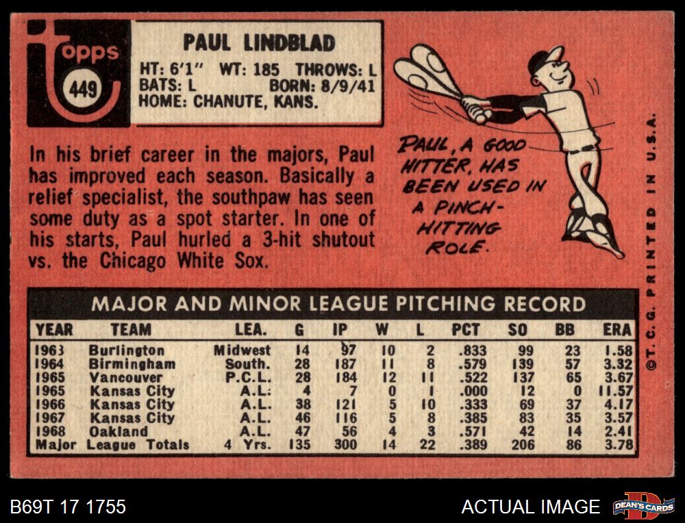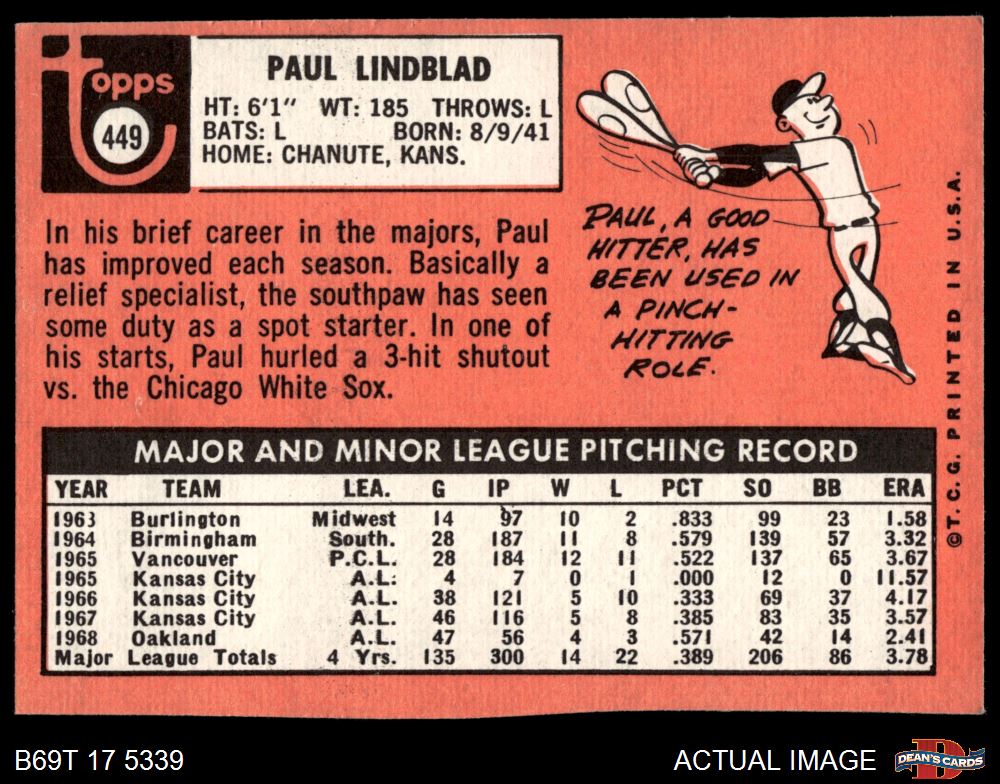 1969 Topps #449 Paul Lindblad 4 - VG/EX