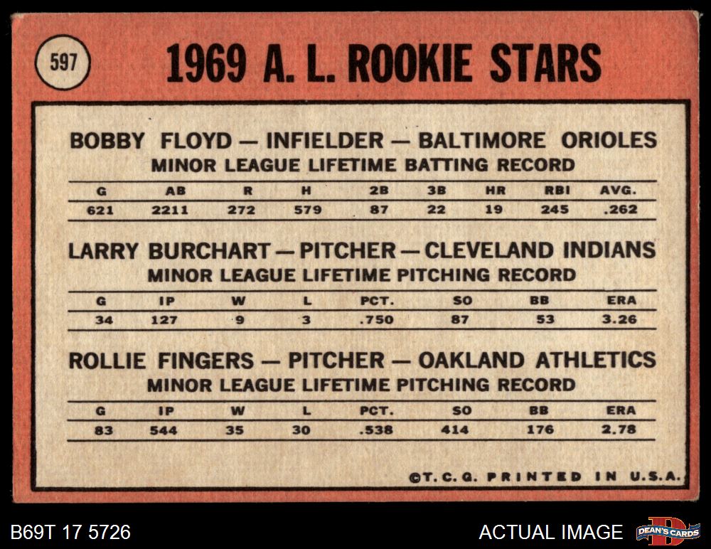 1969 Topps #597 - Rollie Fingers / Bob Floyd / Larry Burchart AL Rookies 1 - POOR