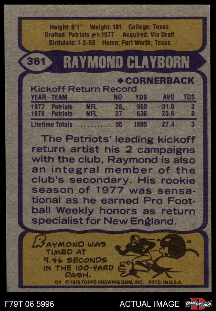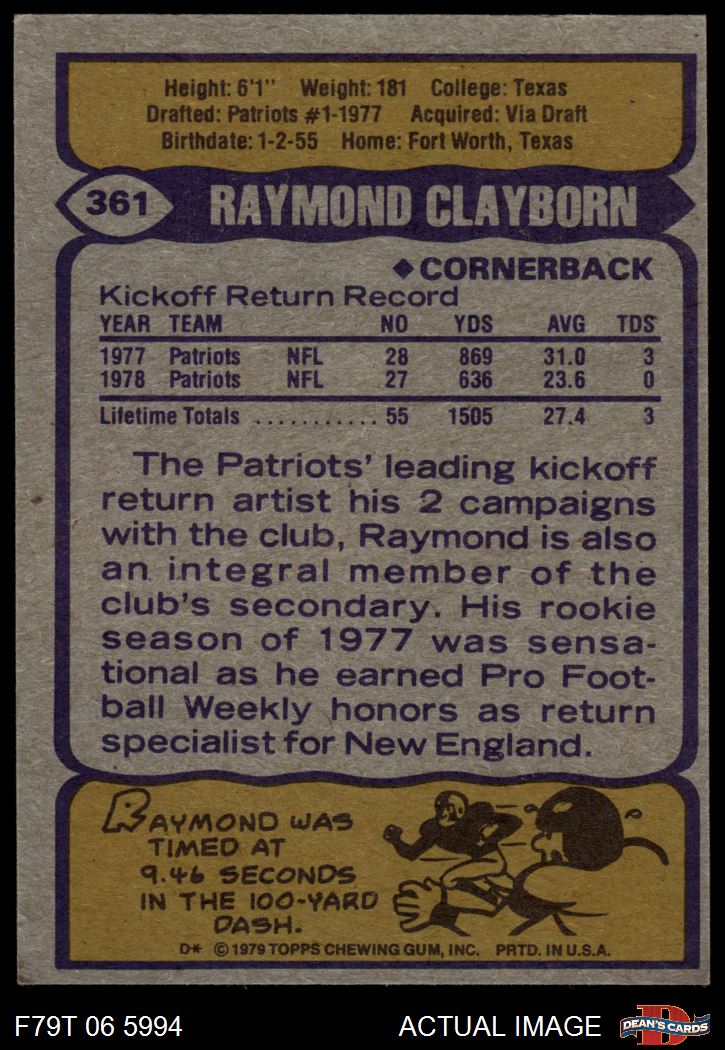 1979 Topps #361 Raymond Clayborn