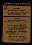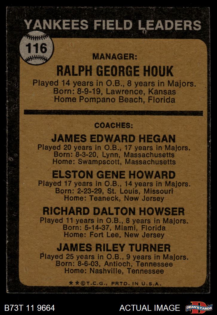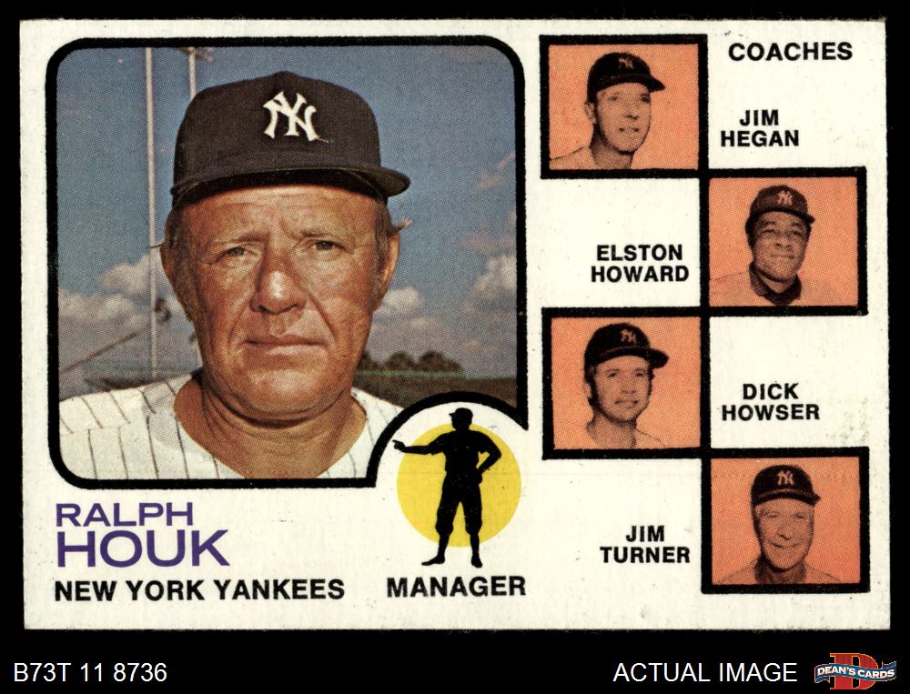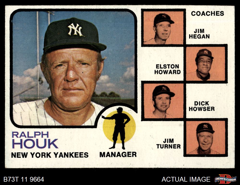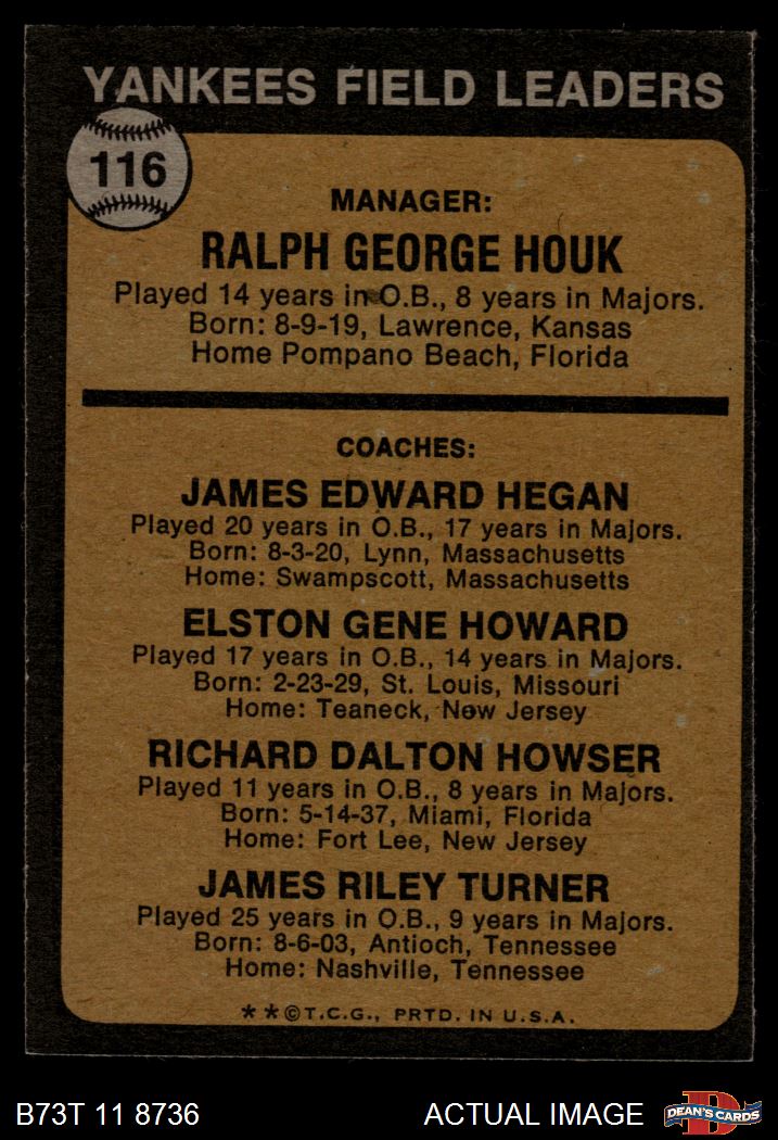 1973 Topps #116 ORG - Ralph Houk / Jim Hegan / Elston Howard / Dick Howser / Jim Turner Yankees Leaders 6 - EX/MT