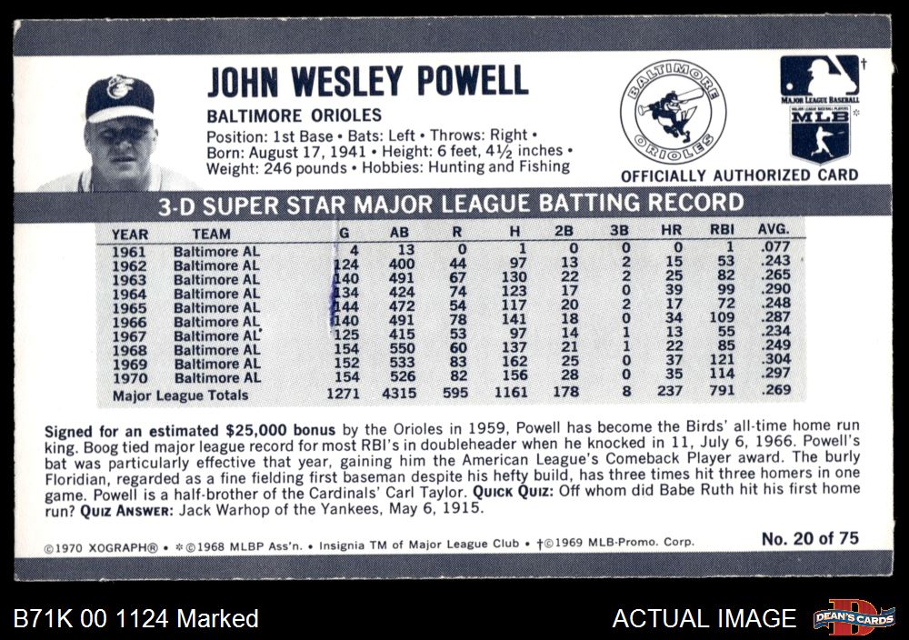 1971 Kellogg's #20 Boog Powell 1.5 - FAIR