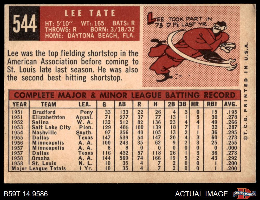 1959 Topps #544 Lee Tate 4 - VG/EX