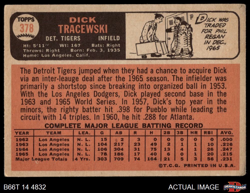 1966 Topps #378 Dick Tracewski 2 - GOOD
